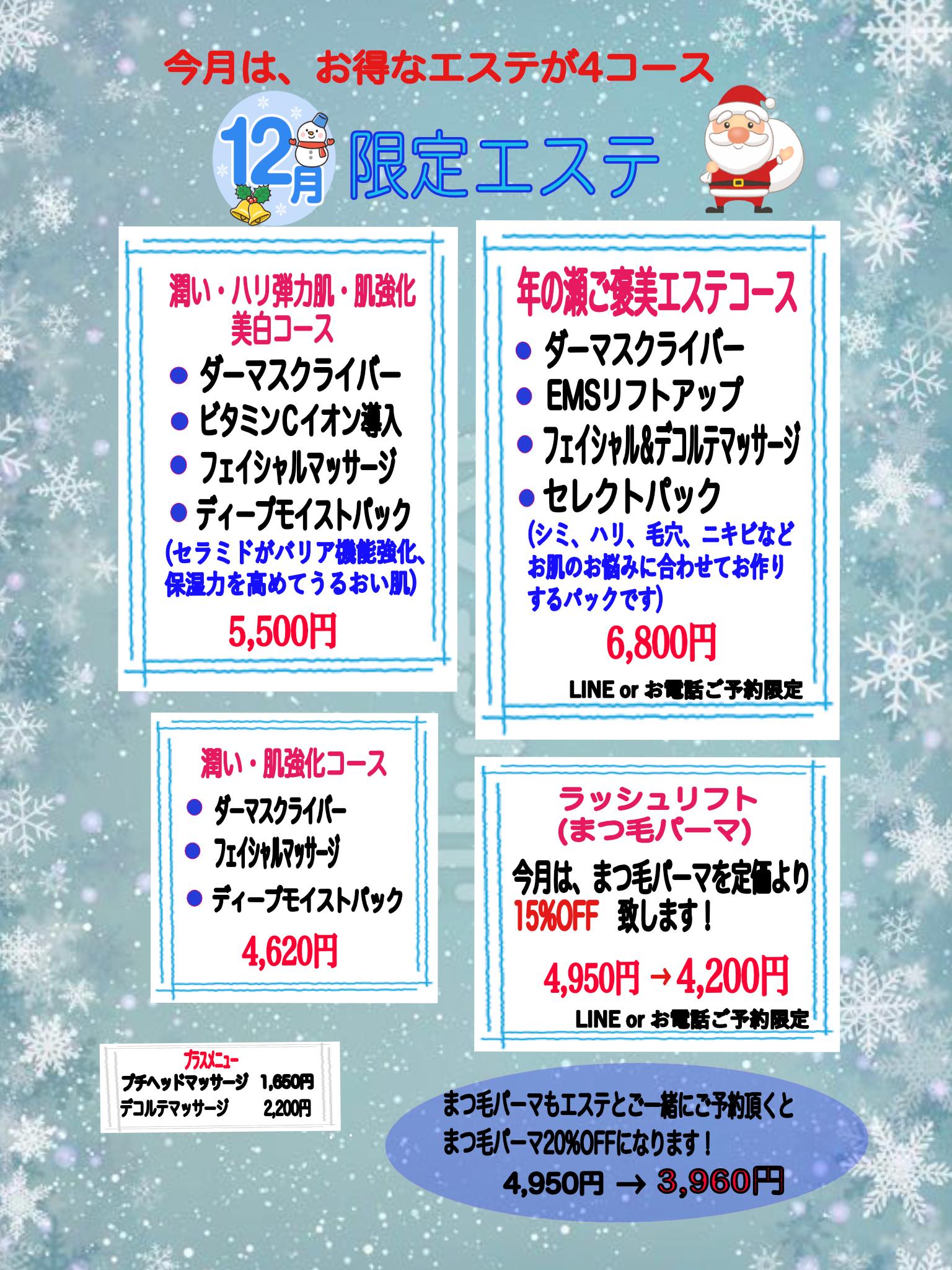 🎁【年の瀬ご褒美エステコース】6,800円(LINE・電話予約限定)