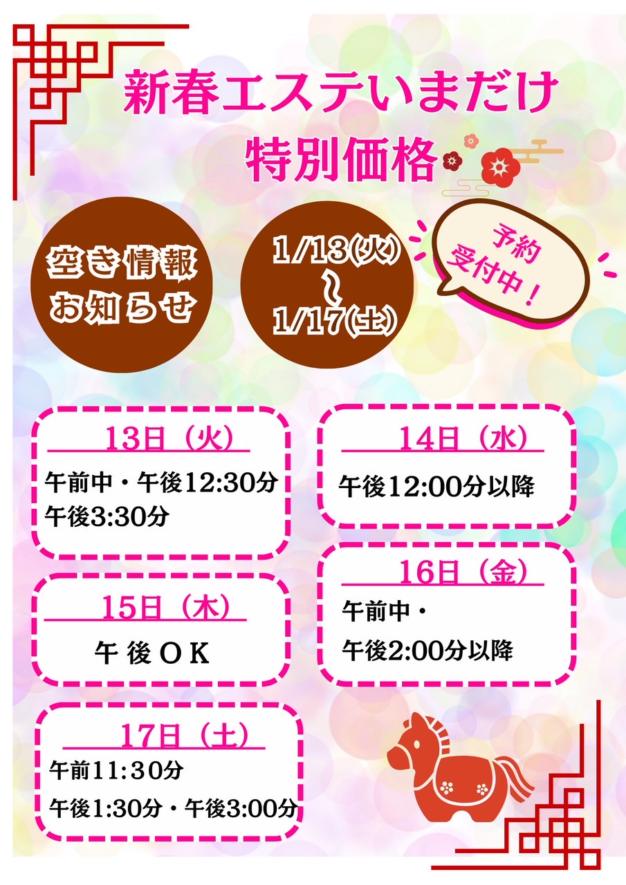 エステ空き状況✨